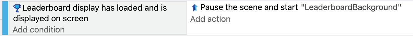 - Use the condition "Leaderboard display is loading" to trigger an action (display a text "Loading" for example)
