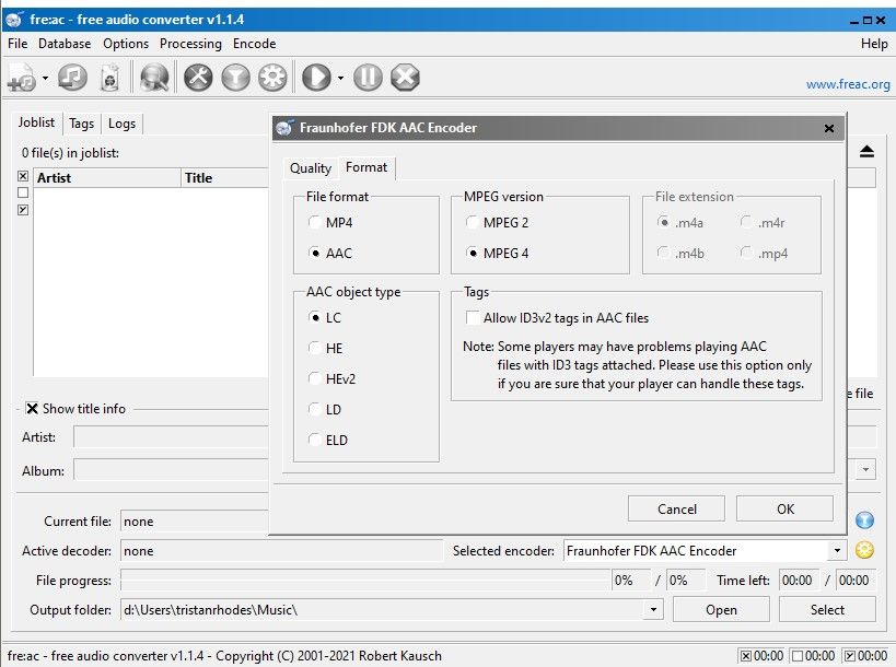 - Choose the encoder called "Fraunhofer FDK AAC Encoder".