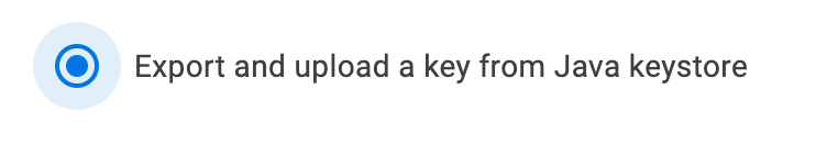 In the next screen, choose ** Export and upload a key from Java keystore**, and then upload 2 files (see next section).