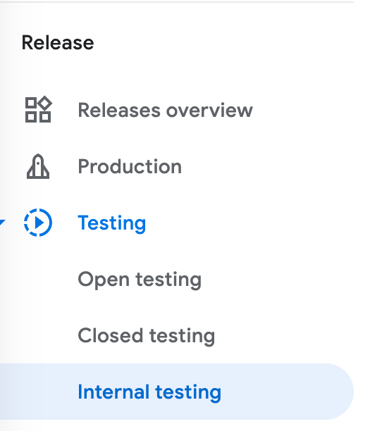 Create a new release, either in Production, Open testing, Closed testing or Internal Testing in the left menu: