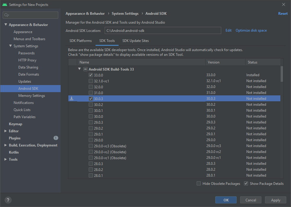 Cordova may need a specific version of the Android build tool. It can be installed with the SDK Manager.