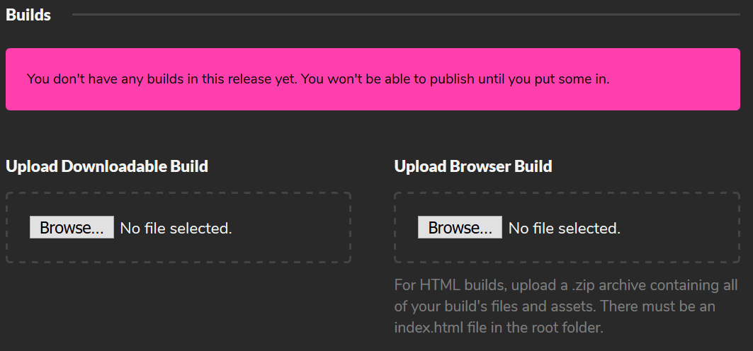 , will be available here. The downloadable build is for distributing executable files that can run on the system. Since you want your game to be playable in the browser, click on Browse