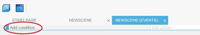 - Go to the existing event containing the condition "At the beginning of the scene" and click Add action.
