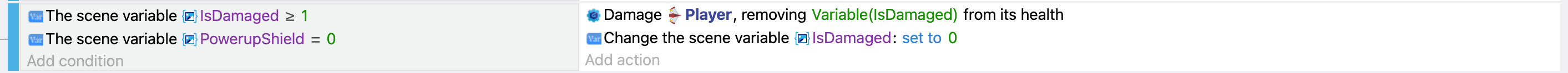 We are going to use this condition to prevent getting damaged while using the powerup.