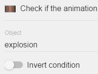 For the parameter on the right popup panel, select the "explosion" object. When the "explosion" object is finished, we want to delete the animation for the explosion.