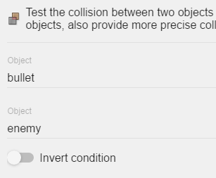 On the right sided panel, select "bullet" for the first parameter. For the second parameter, select "enemy".