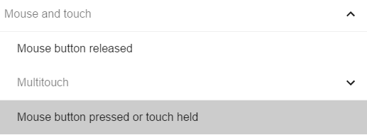 Choose the condition "Mouse and touch" "Mouse button pressed or touch held".
