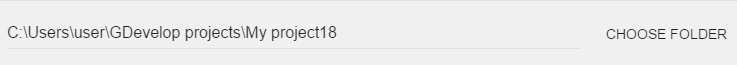 For this tutorial, you need an empty game project but before selecting this option, you need to choose a folder where your game will be saved. On the bottom of the "Create a new game" page you will find the "Choose Folder" area. You may need to scroll down to see this option. Keep the default location or select the location where you'd like to save your game.