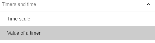 The panel appears on the right. The first parameter, "Object", indicates the name of the object. Leave it blank. The second parameter, "Timer's name", is the name of the timer. Enter “firerate”. //Do not forget the quotes around the timer's name!// Enter 0.25 in the third parameter, "Time in seconds".