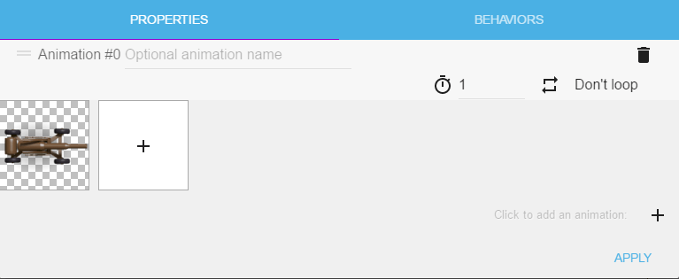 Finally, we want to add an animation to the object. Click/select the "add animation" button in the properties window.